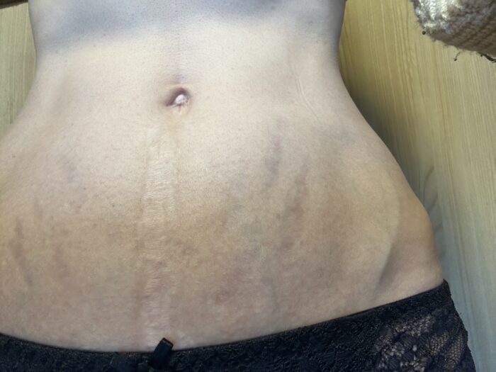 私はケアを軽く考えてしまい、妊娠線が残りました。
