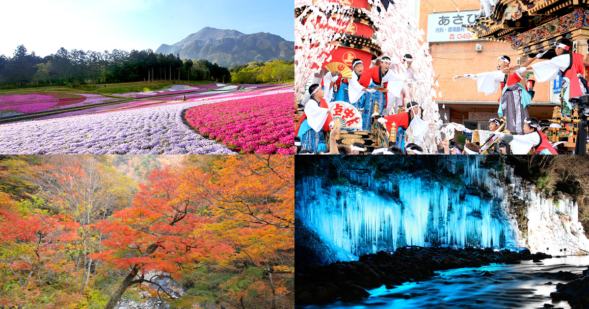 春は色鮮やかな羊山公園・芝桜の丘やしだれ桜、夏は清流の川遊びやホタル観賞や滝めぐり、秋は関東でも有名な紅葉、冬は氷柱など、一年を通じて四季の変化を楽しめる秩父。ぜひ足を運んで、幻想的な風景をお楽しみくださいね。